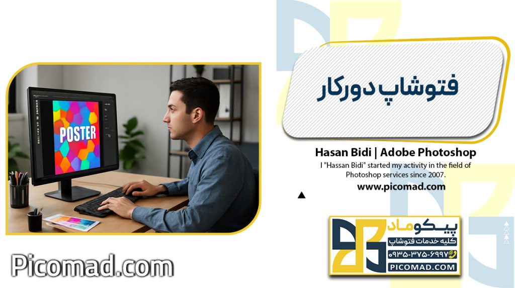 فتوشاپ دورکار حسن بیدی در مجموعه پیکوماد امکان رزو وقت آنلاین را بر ای شما عزیزان فراهم نموده است. از طریق هر پیام رسانی که دارید با ما در ارتباط باشید. با تشکر